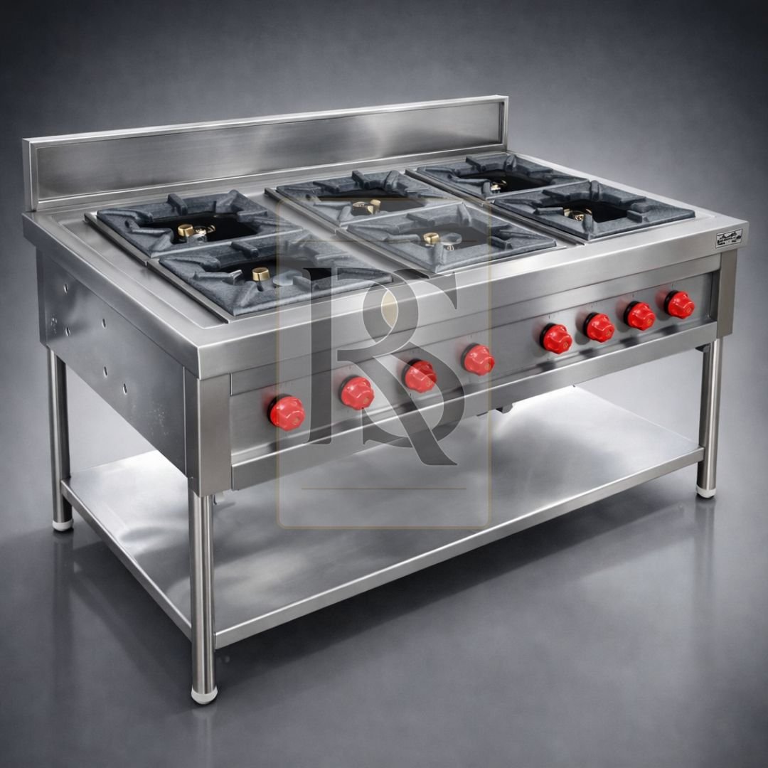 Space-Efficient 6-Burner Layout: Optimized burner placement allows for six small-to-medium pans or a mix of large cookware, significantly increasing your kitchen’s hourly output.